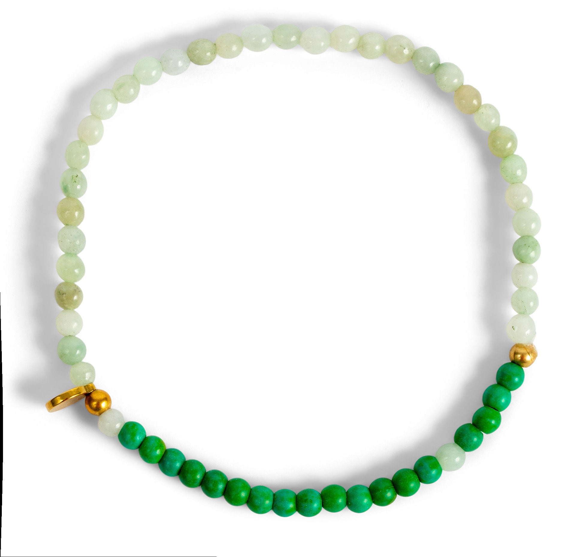- Made with semi-precious stones, hematite, glass beads, and elastic