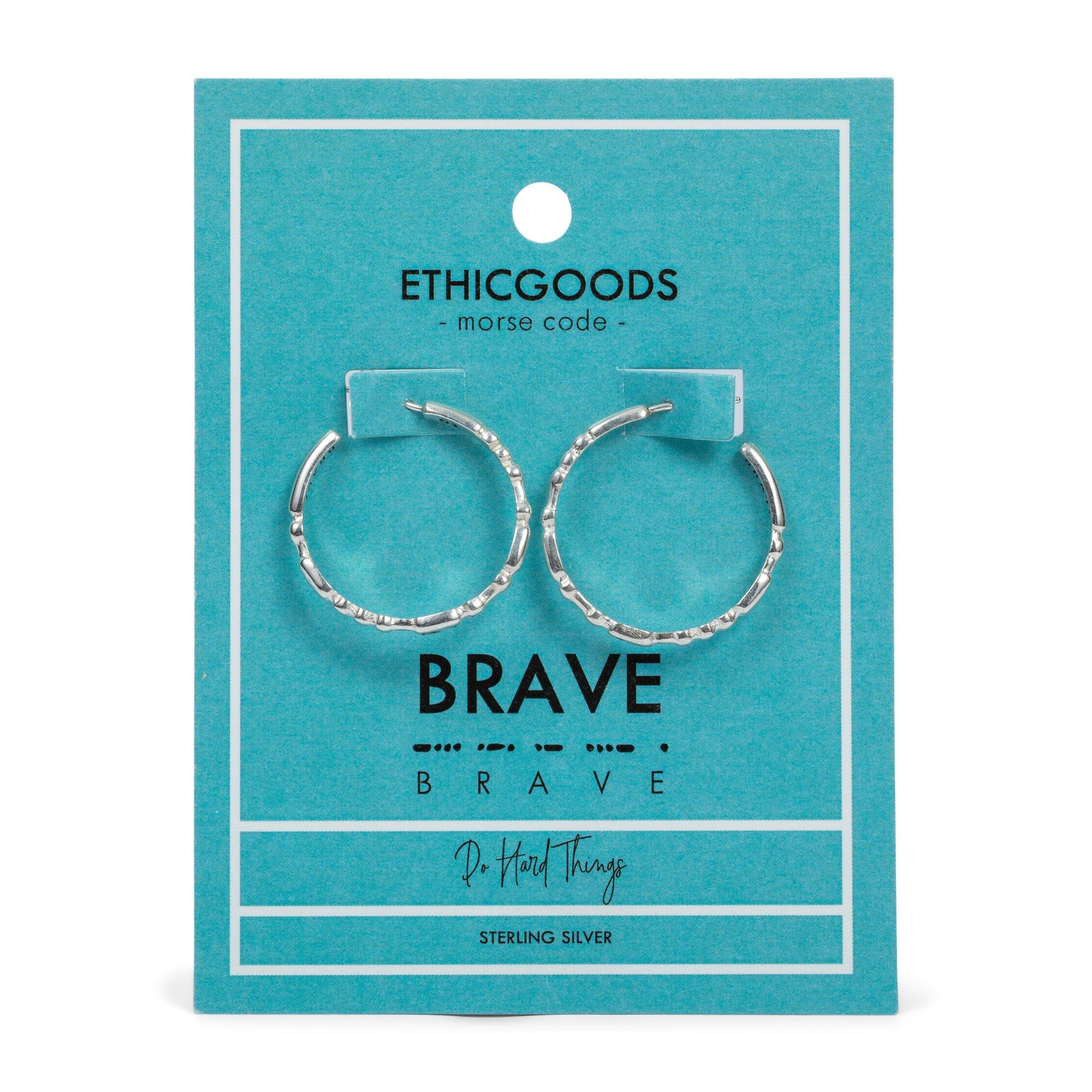BRAVE | Morse Code Hoop Earrings | Sterling Silver