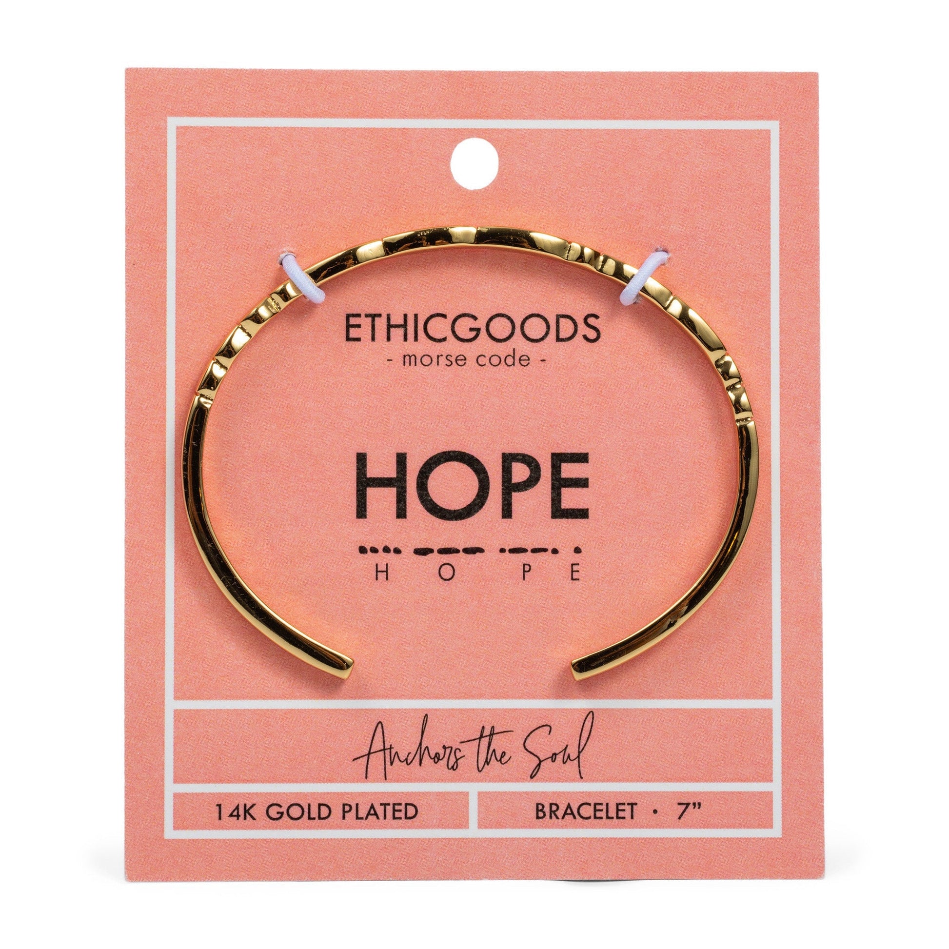 Be one-of-a-kind with this Morse Code Patterned Cuff! Crafted with 14k gold plated metal and handmade with love, this classic piece gets a fresh twist with a unique design! Adjust it to your wrist size and you're ready to show off your stylish look with a dash of individuality! The cuff pattern is made of dots and dashed that spell different empowering words in Morse Code. What word will you choose? We’d love to hear what your jewelry means to you. Share your story and photos with us! @ethicgoods