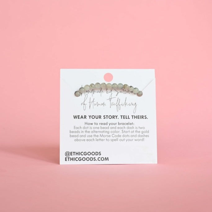 This bracelet looks great alone or stacked with your other favorite Morse Code or stone stacking bracelets!