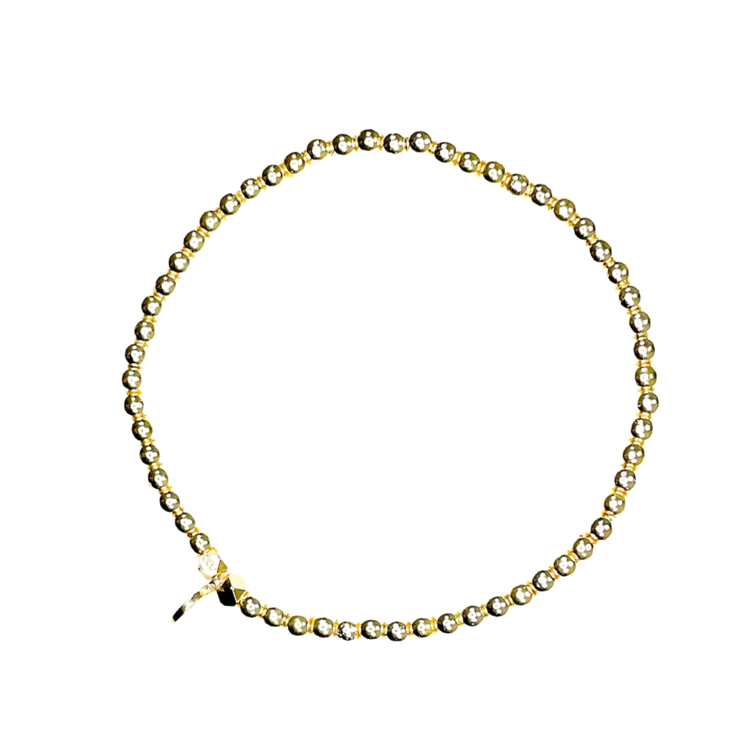 How to read your jewelry: A Morse Code dot is one bead and a dash is two beads in the alternating colors. Start at the small gold spacer bead and follow the Morse Code spelling around the bracelet!