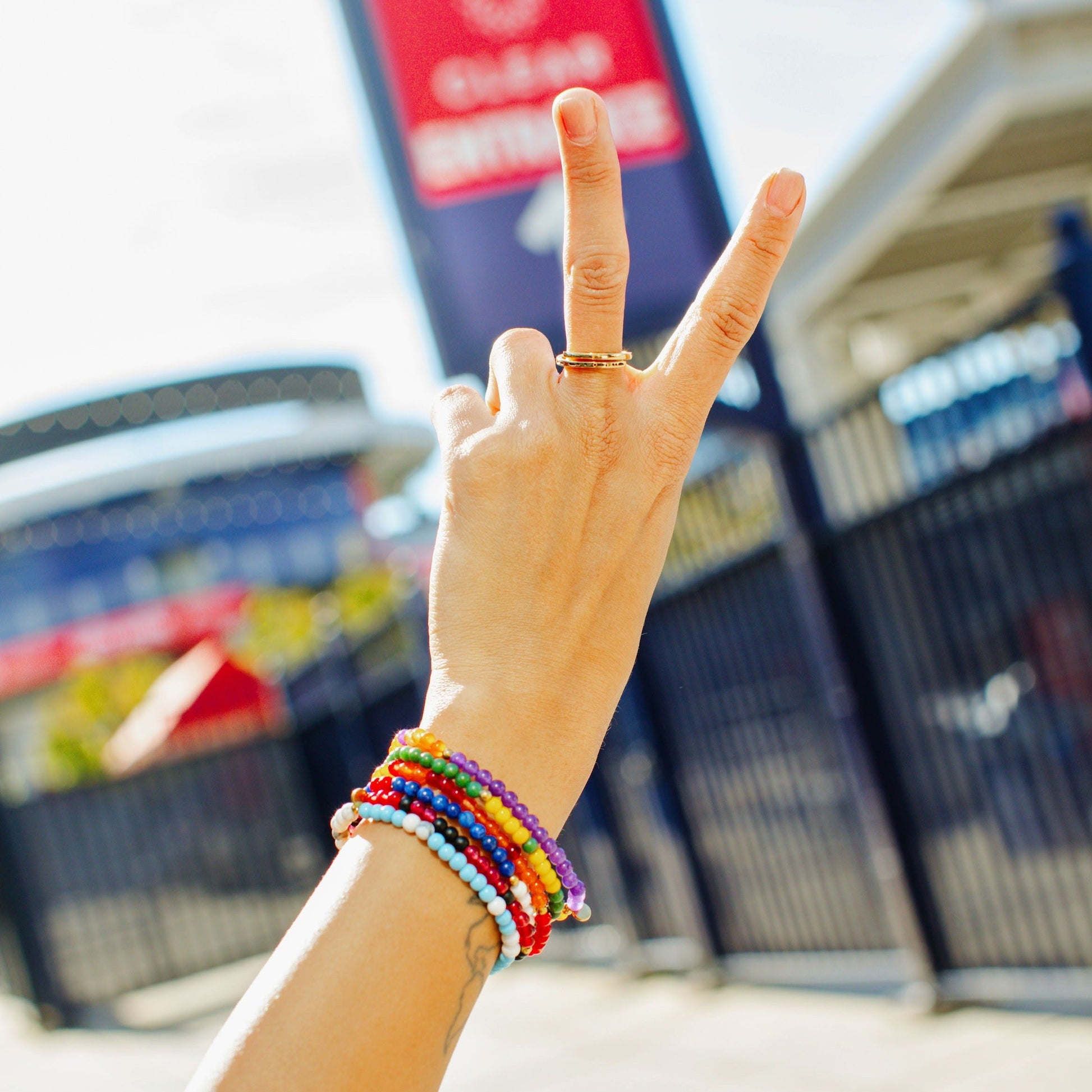 Play Ball! Score a home run with this playful Morse Code bracelet featuring red and white beads that spell out "Baseball" in Morse Code. Perfect for any baseball fan, this accessory is a fun way to show your love for America's pastime.