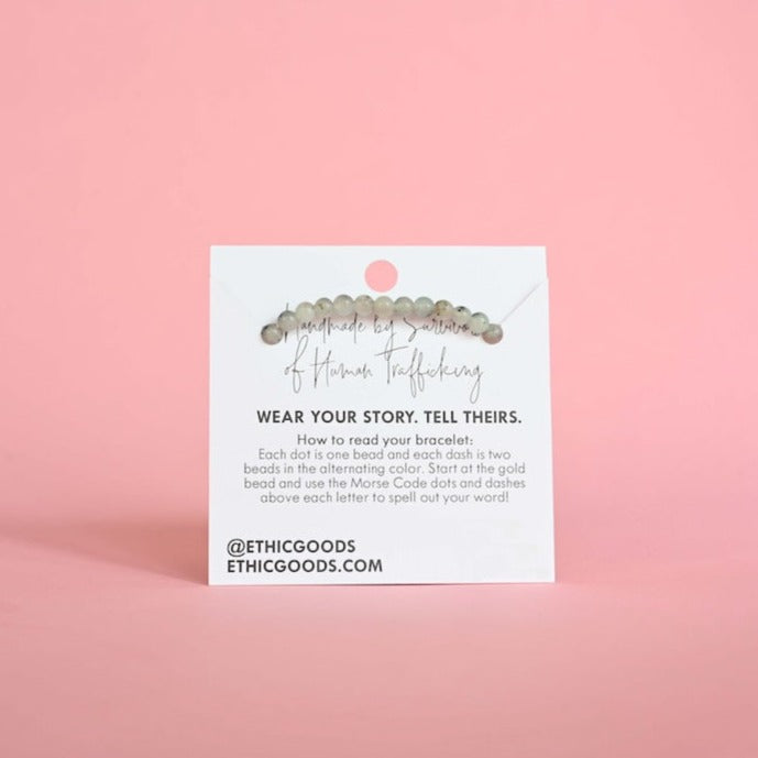This bracelet looks great alone or stacked with your other favorite Morse Code or stone stacking bracelets!