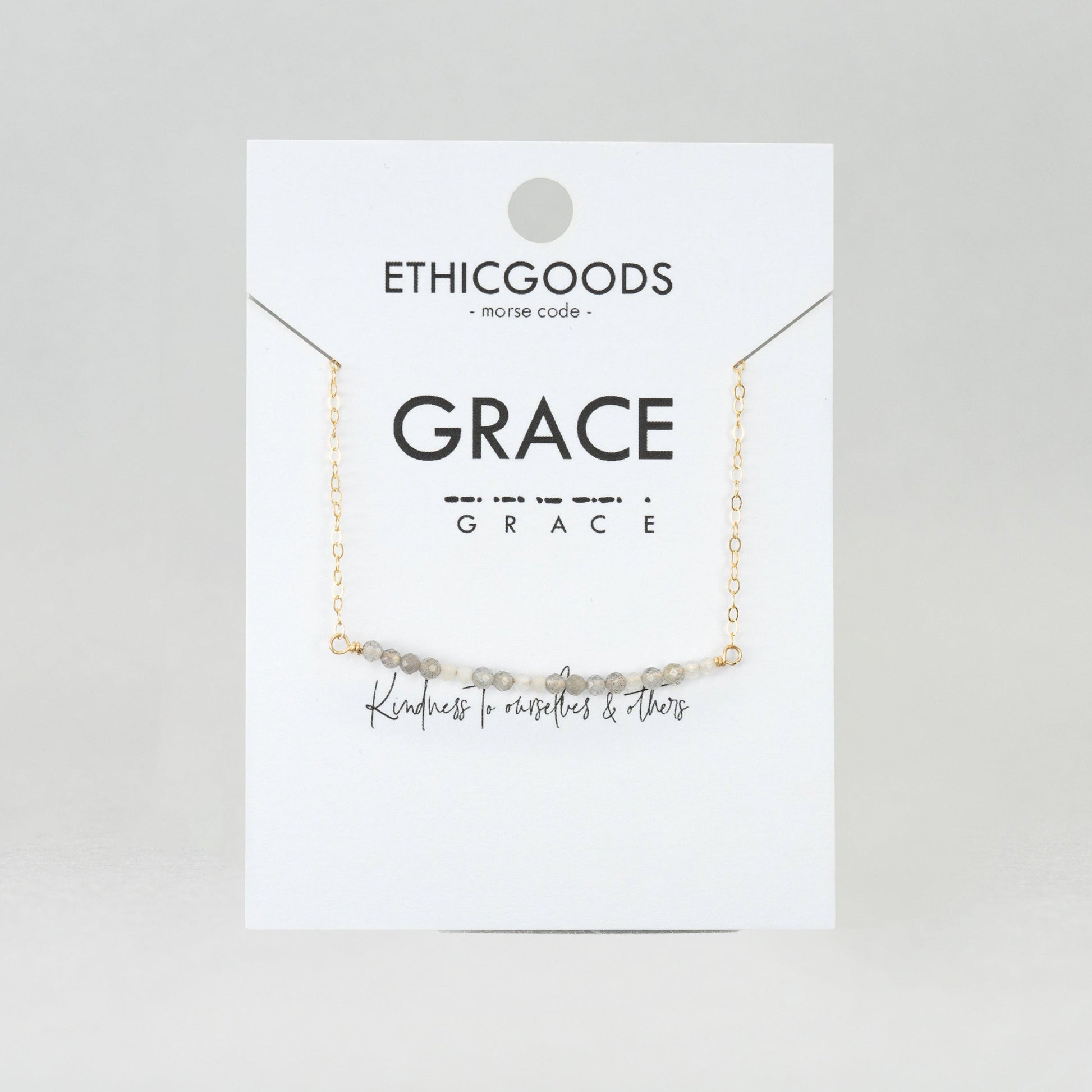 This 14k gorgeous, dainty gold-filled necklace spells GRACE in Morse Code. It’s perfect to wear every day layered with other necklaces or as a stand alone piece!
