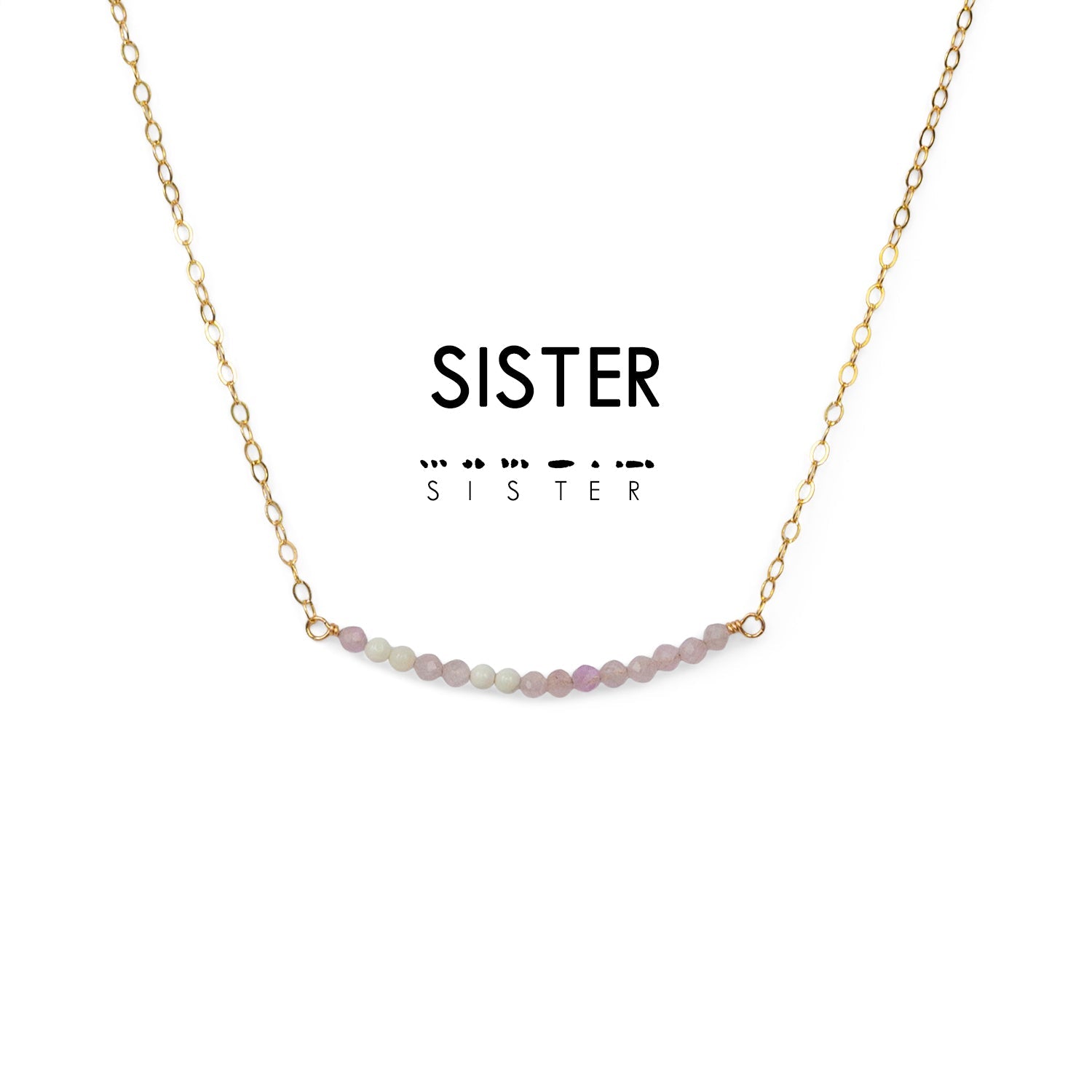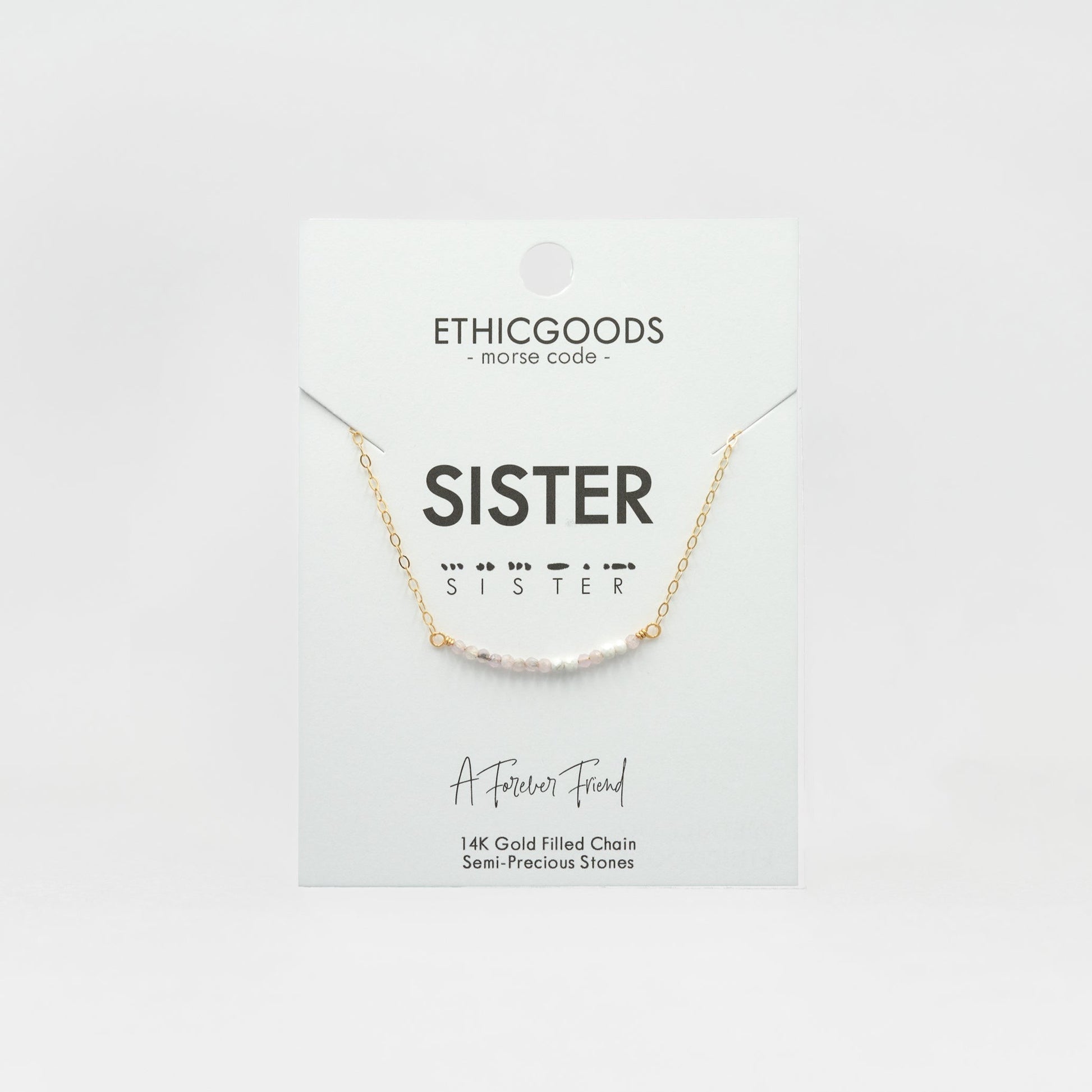 This 14k gorgeous, dainty gold-filled necklace spells SISTER in Morse Code. It’s perfect to wear every day layered with other necklaces or as a stand alone piece!
