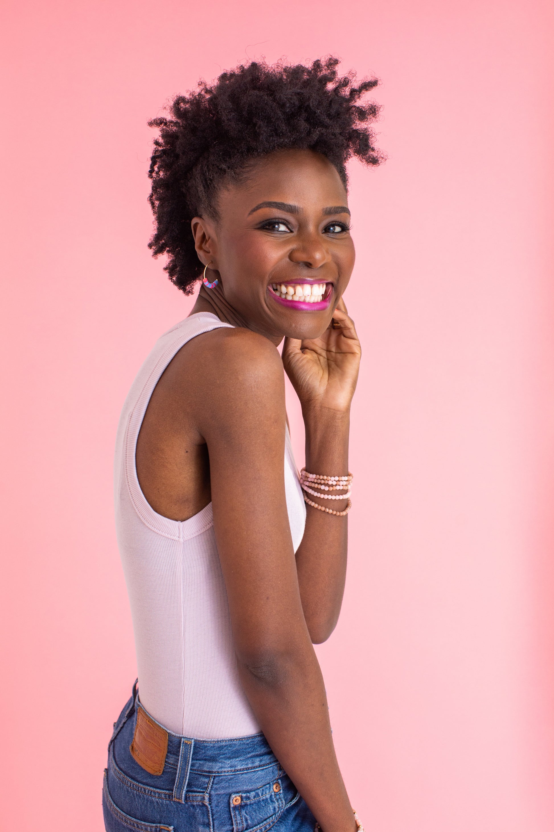 This collection is the perfect mix of fun and meaningful. Each earring has gold plated hoops and two bright colors of Heishi beads!